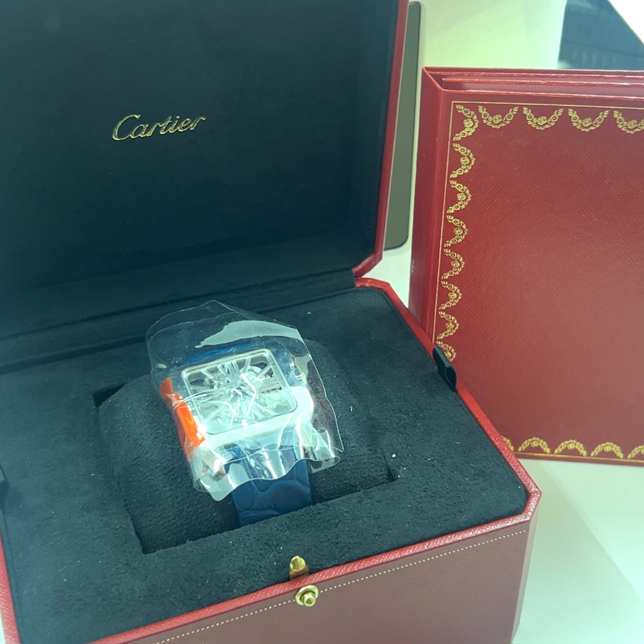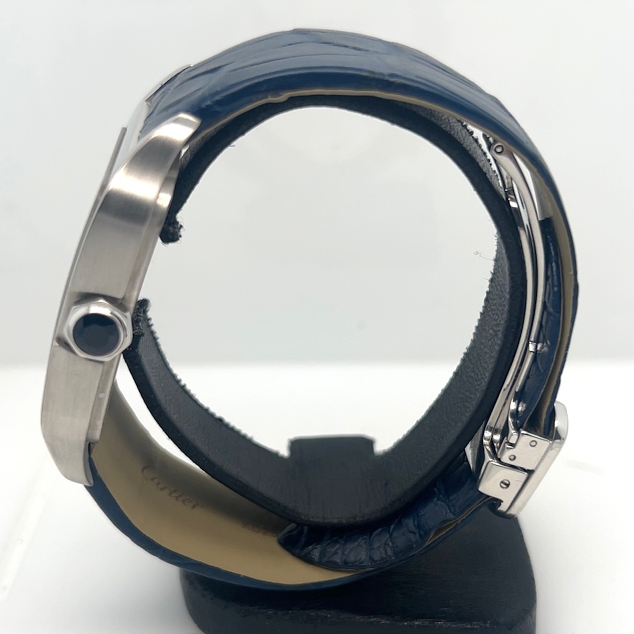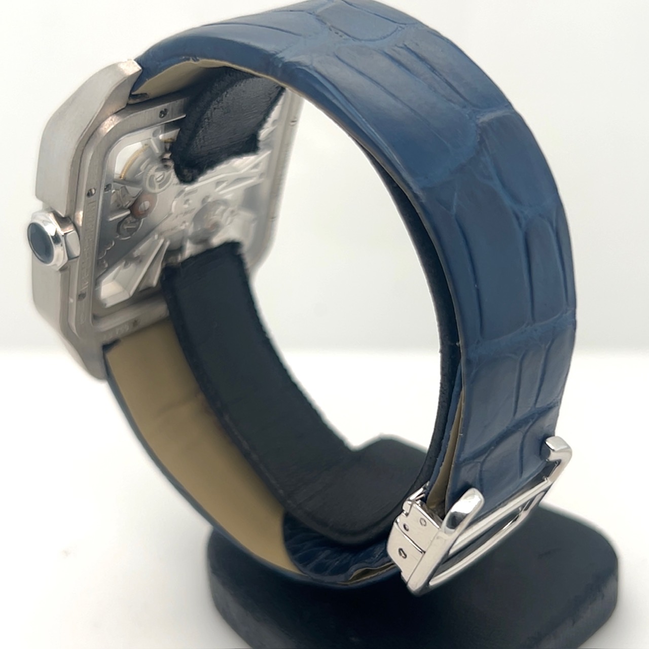 20 jewels,72H gangreserve,saffierglas,46,4 x 38,7 mm,fraaie donkerblauwe krokostrap met originele 18 k witgouden vouwsluiting,voor kenners het mooiste Cartier horloge ooit gecreëerd ,in excellent condition ,95 procent new,FULL SET,originele doos en originele certificaat ,echt voor de liefhebber en/of verzamelaar ,komt met onze faktuur en garantie …21.400 euro