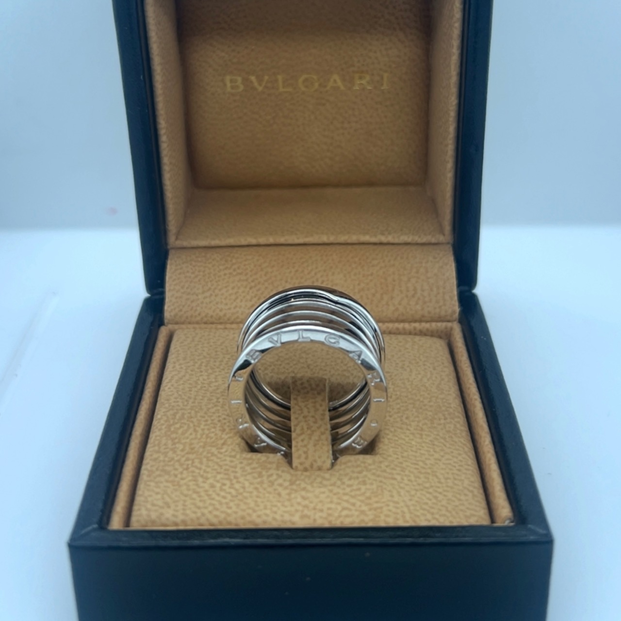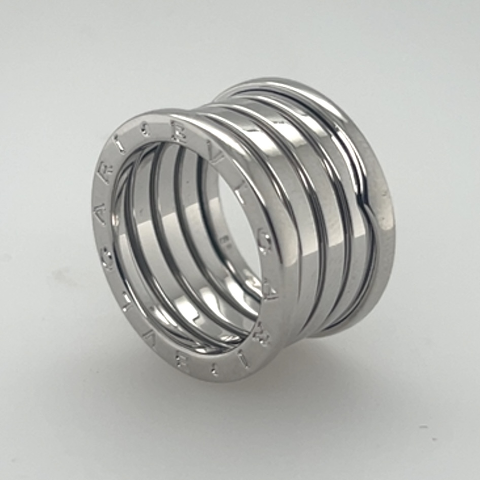 De ring is van het Italiaanse luxemerk Bulgari en behoort tot de collectie B.zero1.Het ontwerp is geïnspireerd door het Colosseum in Rome met de kenmerkende spiraalvorm en cirkelvormige structuur die de architectonische grandeur van het amfitheater weerspiegelt .De buitenranden van de ring de plattere randen zijn gegraveerd met het logo BVLGARI.18karaat witgoud .Komt met de originele Doos voor de prijs van 1.875 euro