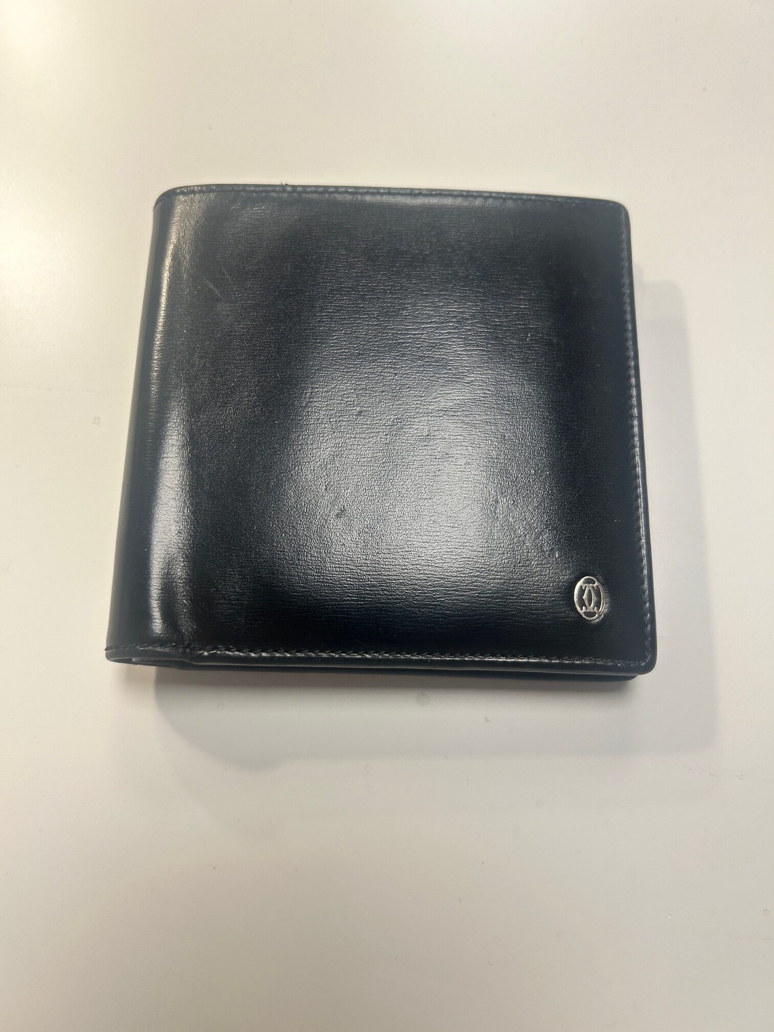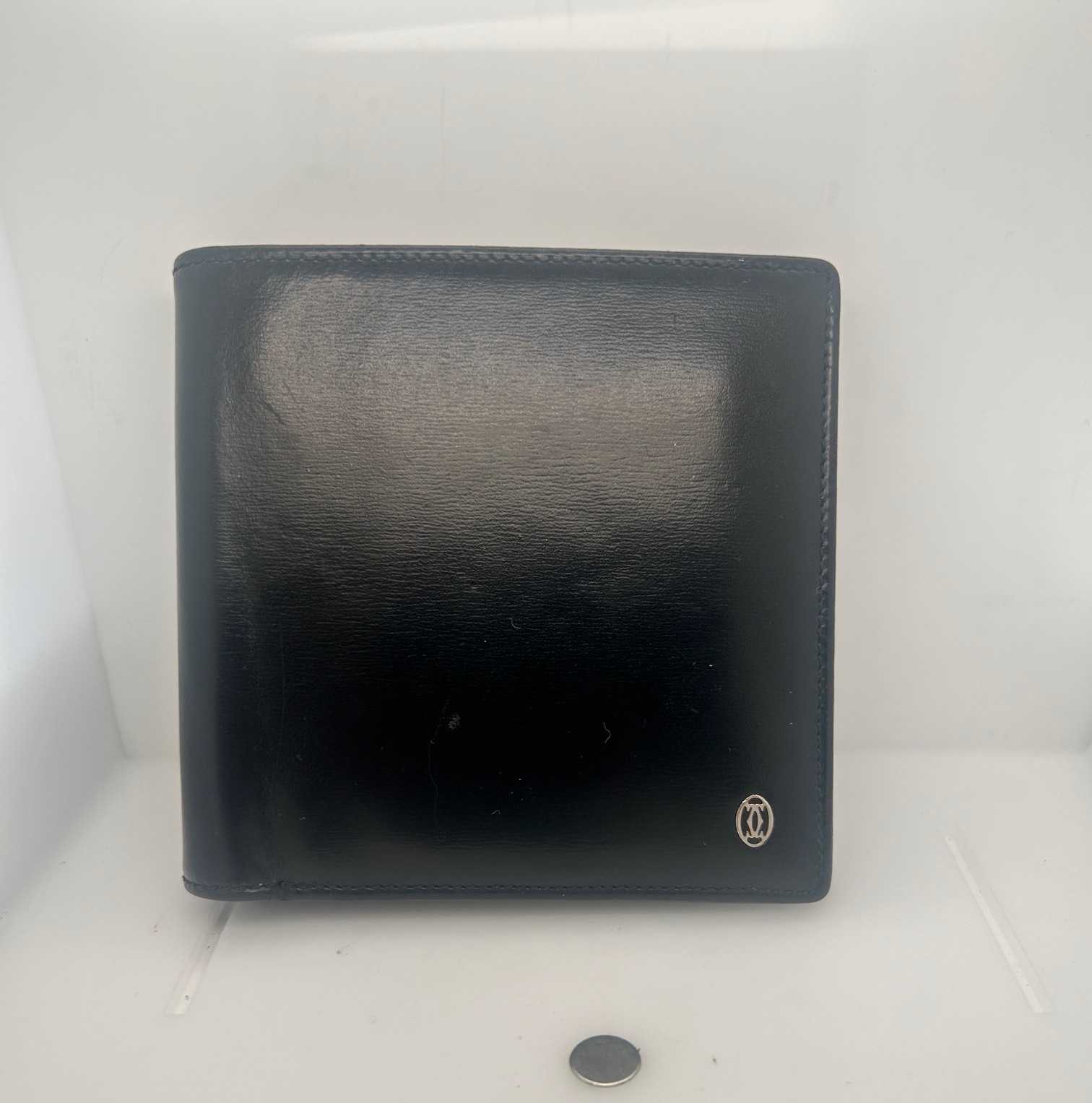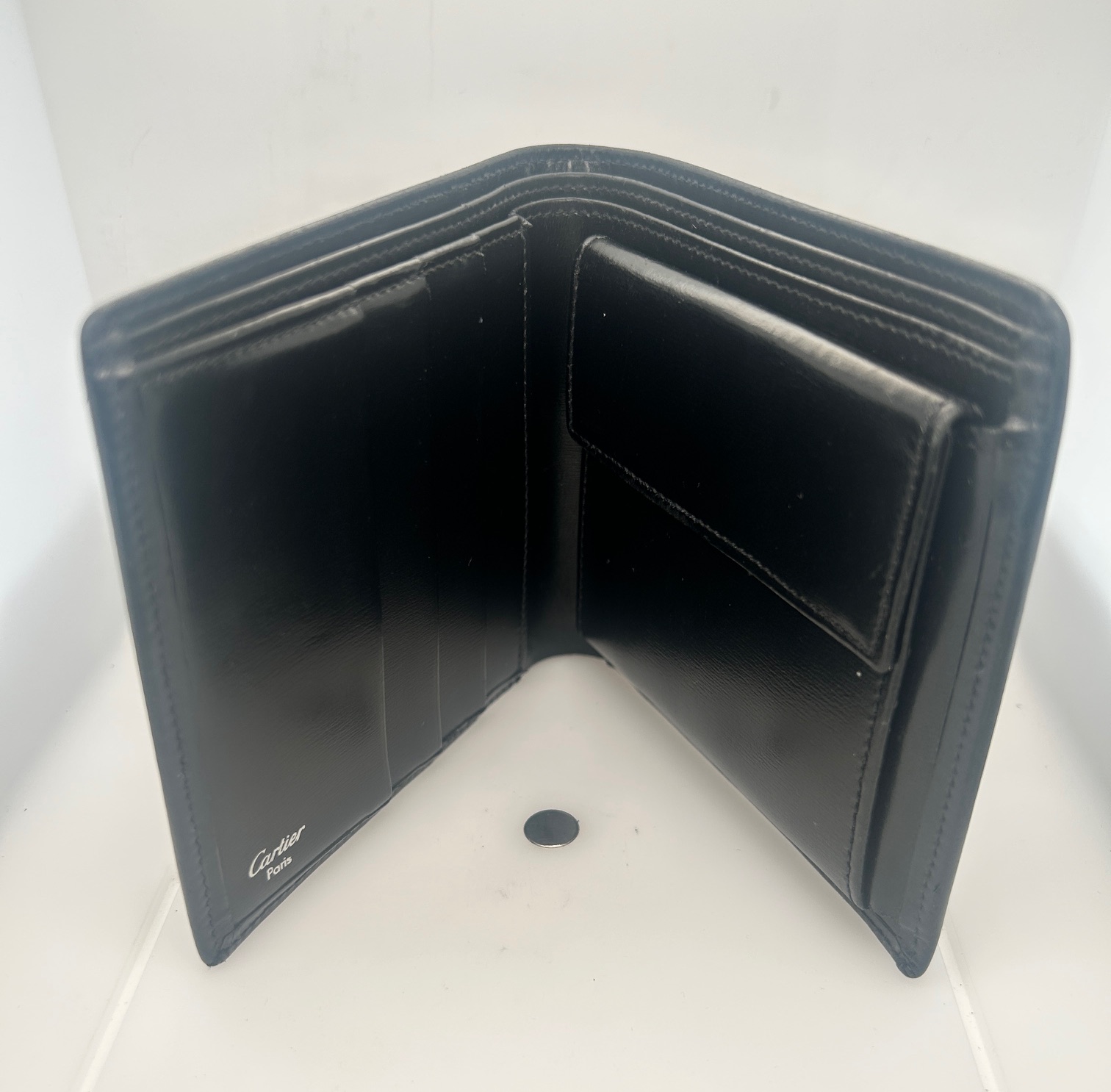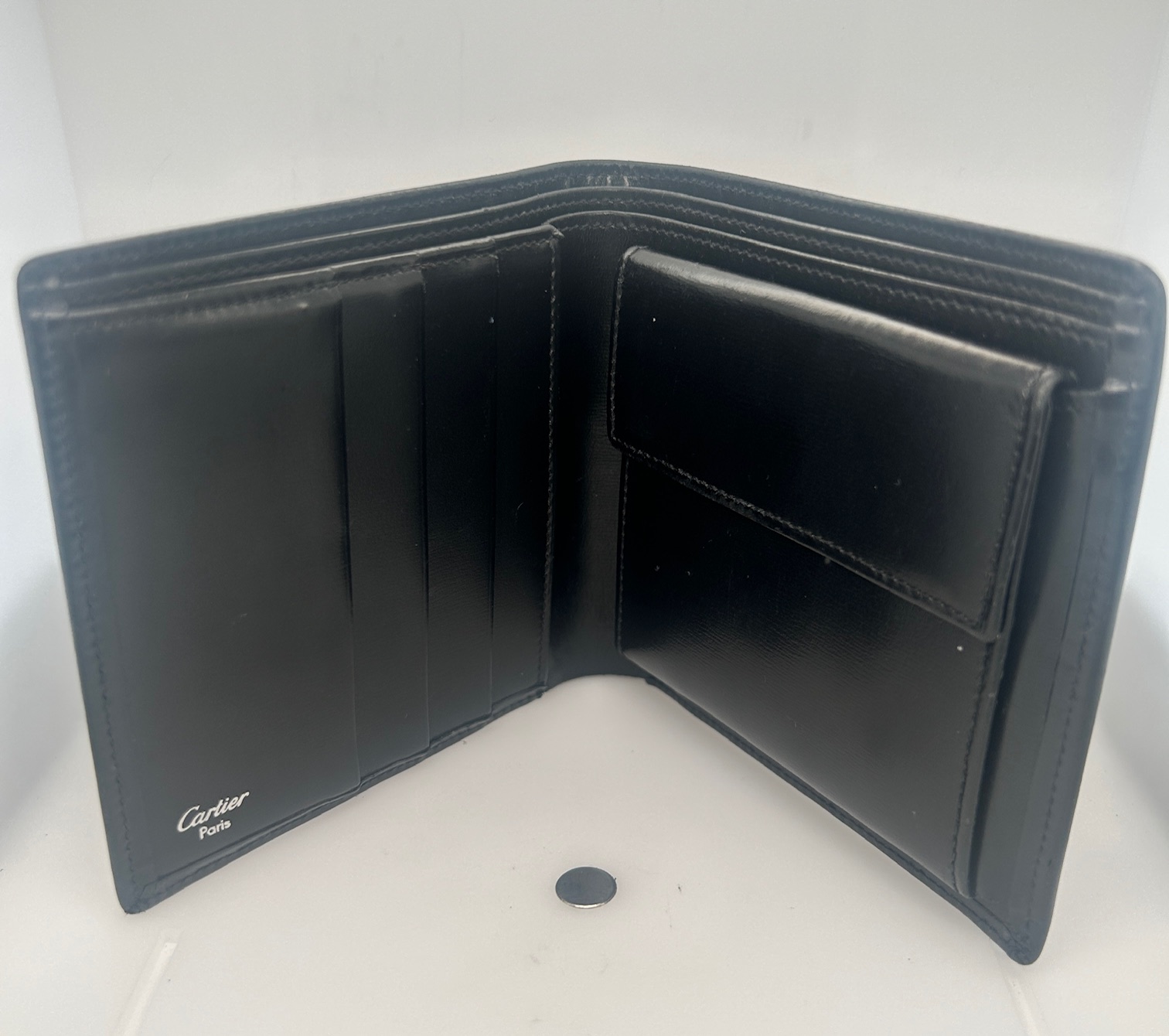 Cartier mens black leather waller , smooth leather , 4 credit card slots, coin holder, 2 bill slots prijs 375,00 euro