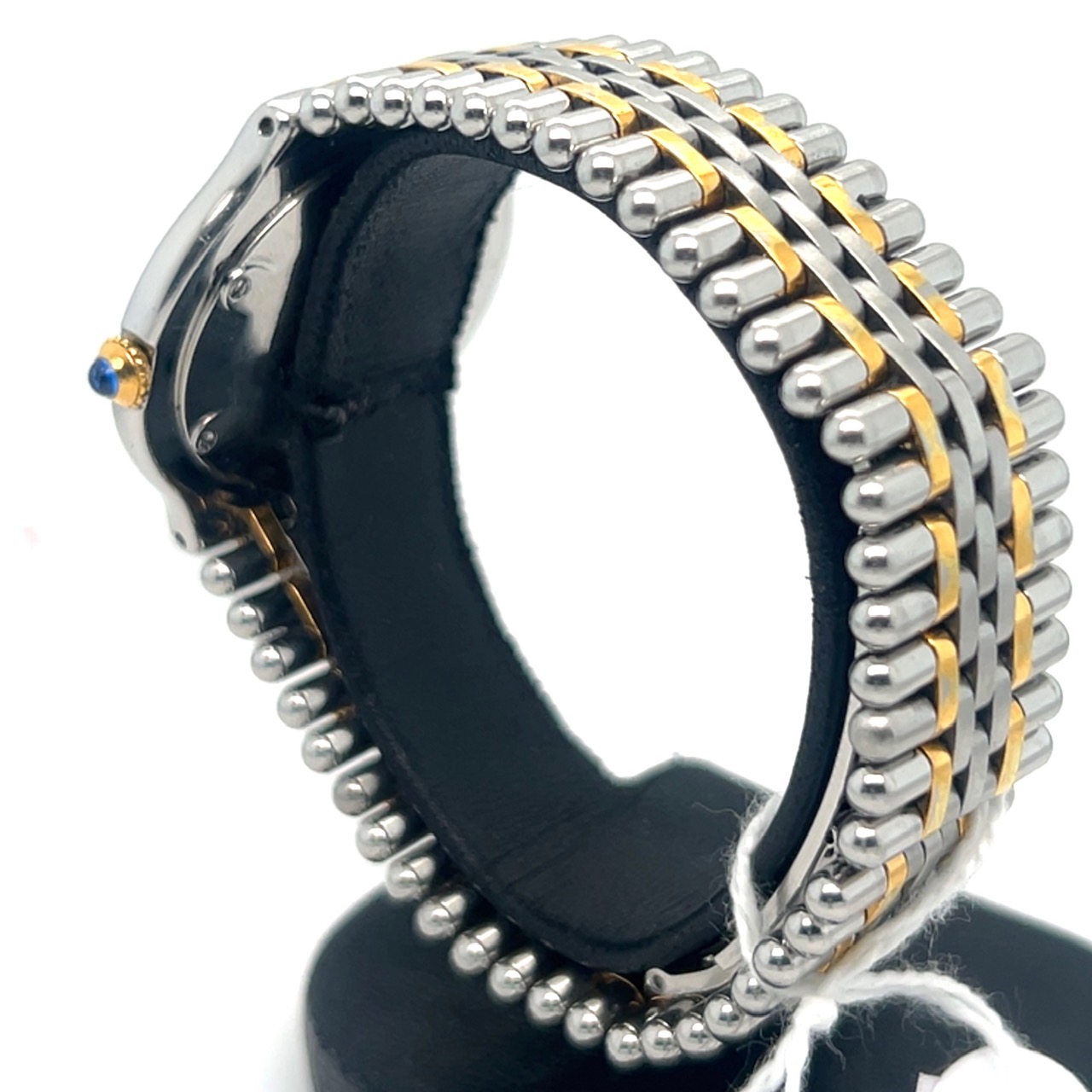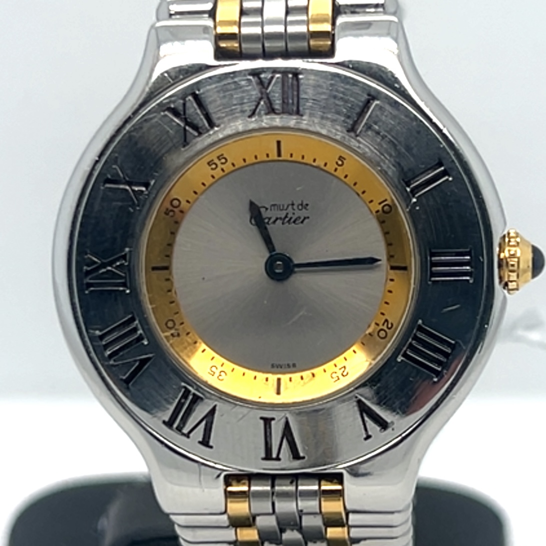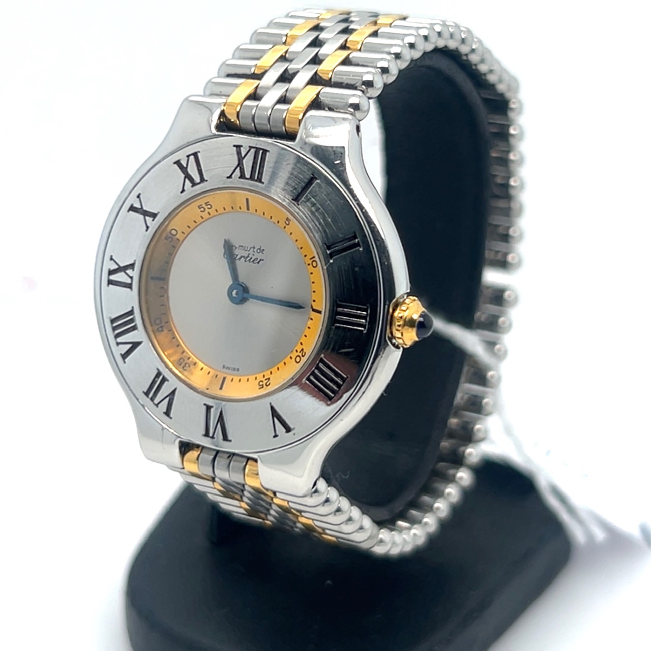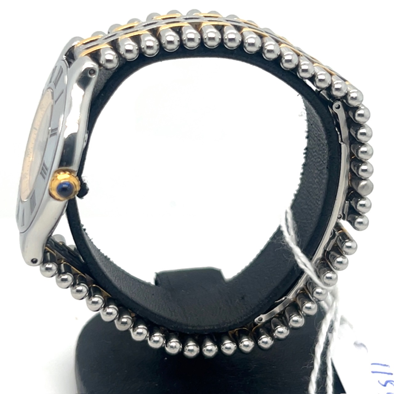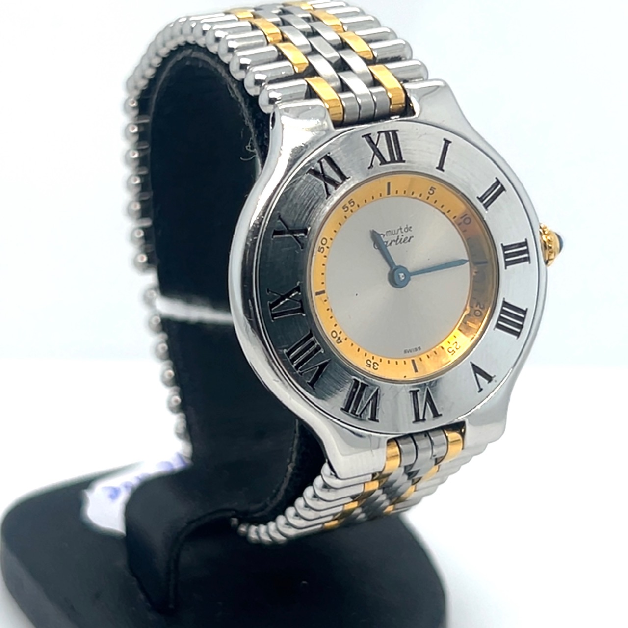 Cartier must de 21 met referentie 1330 heeft een stal met gouden kast met een quartz uurwerk (dus loopt altijd op tijd), staal met goud gecombineerde band met een dubbele vouwsluiting , Dit exemplaar is in goede staat komt met onze winkel factuur en garantie voor de prijs van 1.165 euro