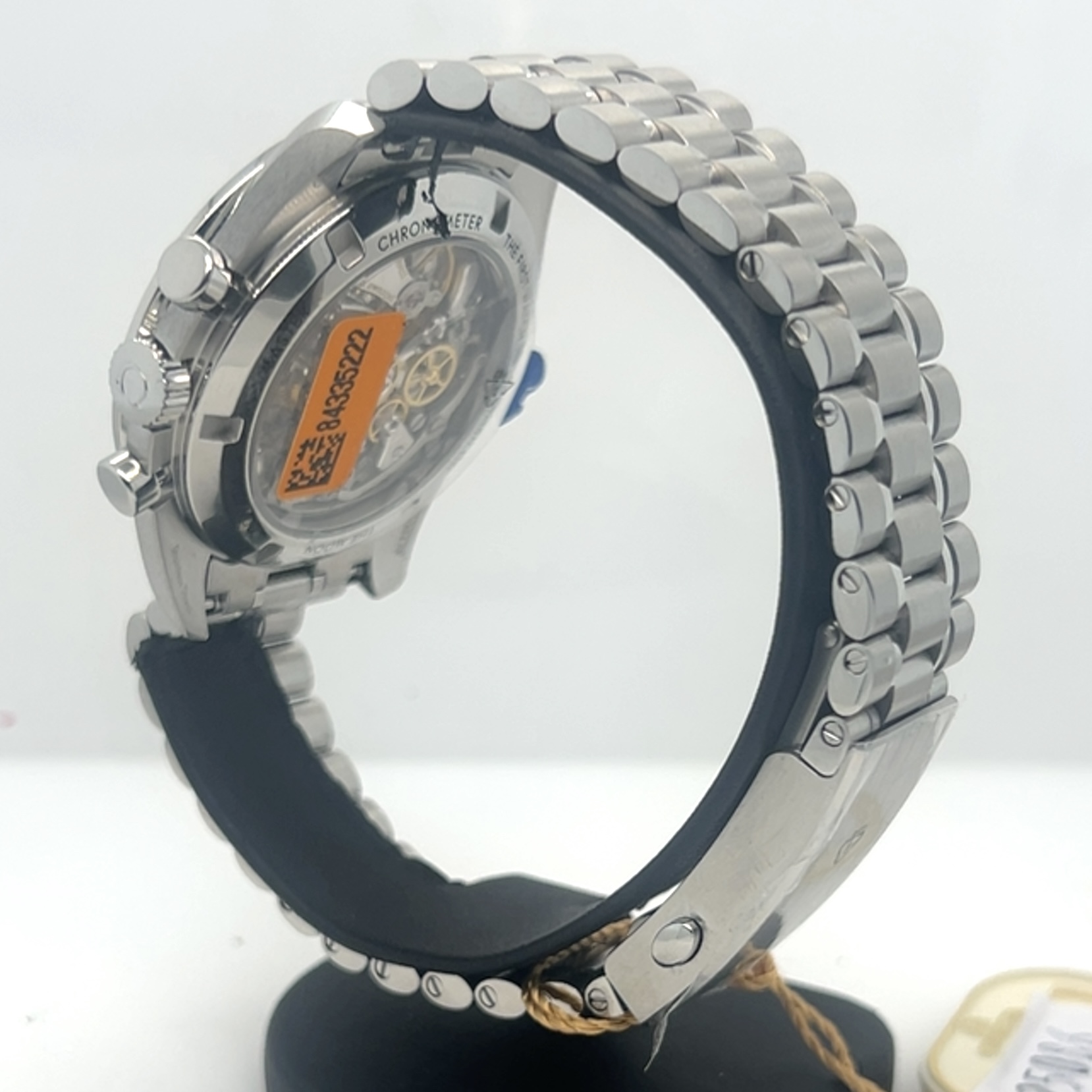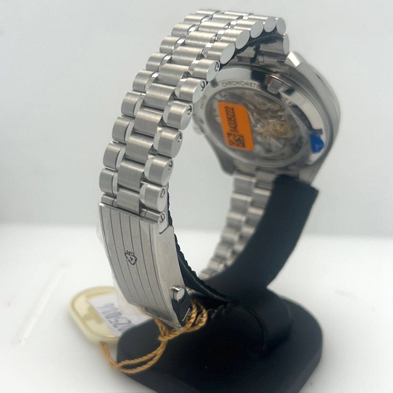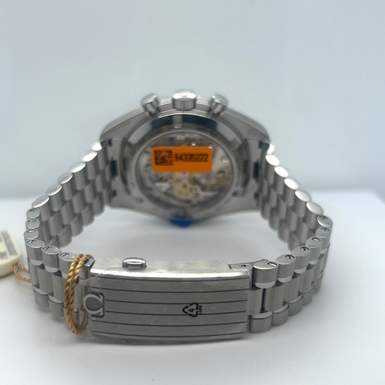 Omega Speedmaster Moonwatch proffessional Co-axial Master chronometer met referentie 310.30.42.50.01.002 chronometer in het staal 42 mm ,asymmetrisch design geinspireerd op het beroemde 4e generatie speedmaster-model dat gedragen werd tijdens de maanlandingen, voor- en achterzijde voorzien van bol saffierglas met anti reflectie (sapphire sandwich ) ,aluminium tachymeter met iconische “dot over 90”,zwarte step dial ,kleine secondewijzer plus 30-minuten en 12-uur subdials ,stalen bracelet met vijf schakel per rij en vouwsluiting met comfort sluiting ,Handopwind omega co axial master chronometercalibre 3861 met een gangreserve van 50 uur , waterdicht tot 5 bar/50 meter , deze moderne interpretatie van de iconische Moonwatch is nieuw dus ongedragen,in de stickers, en geheel compleet voor de prijs van 7.999 euro