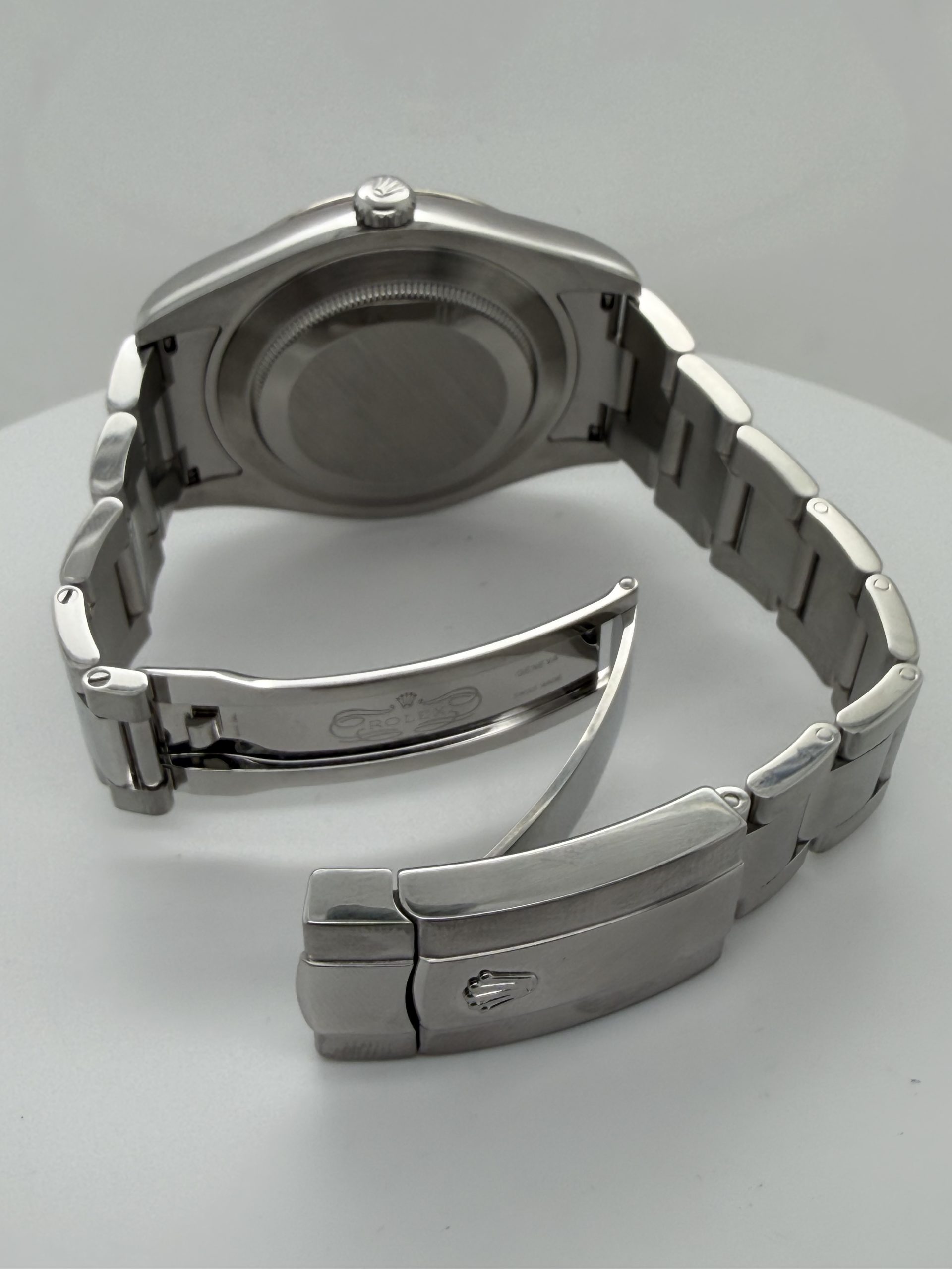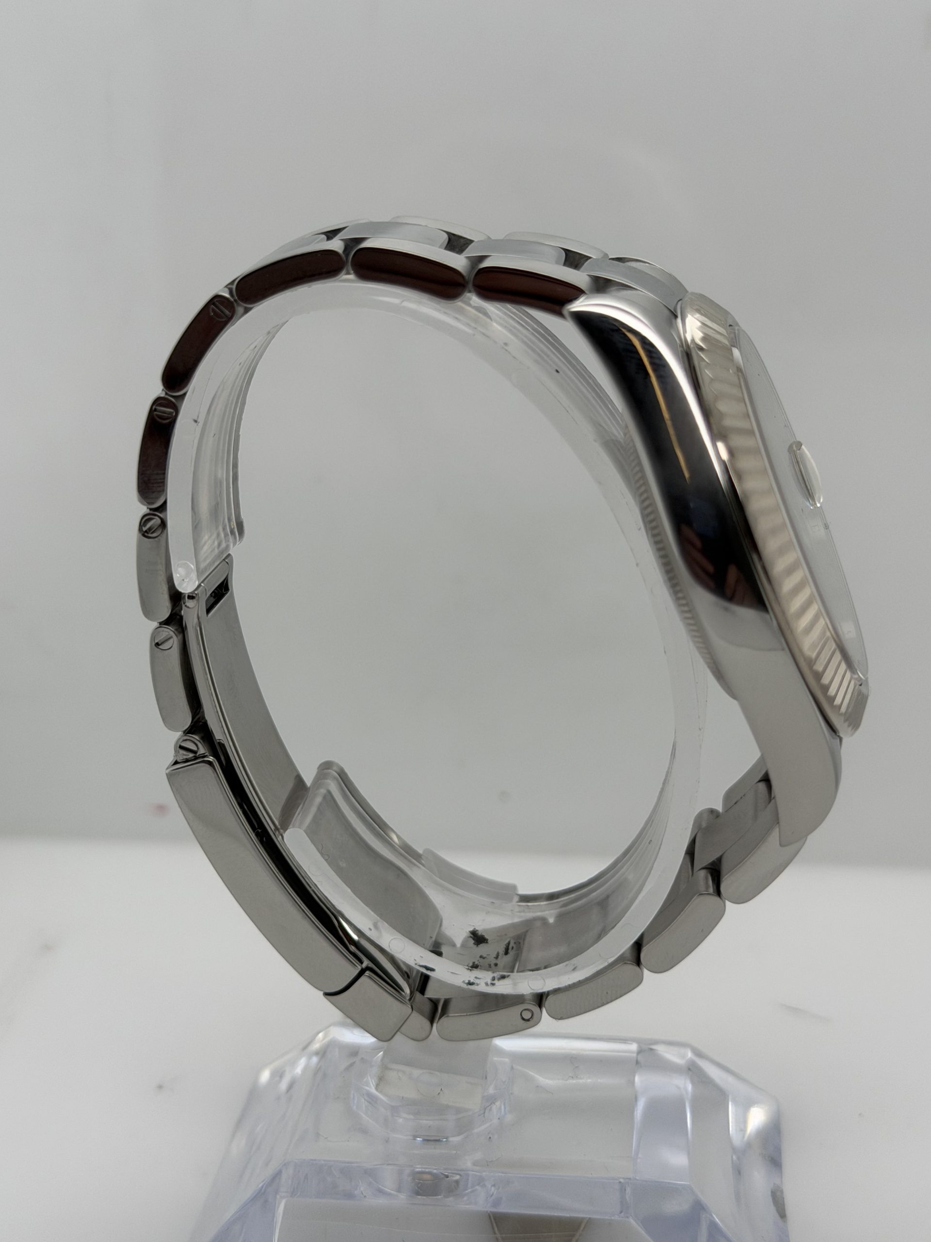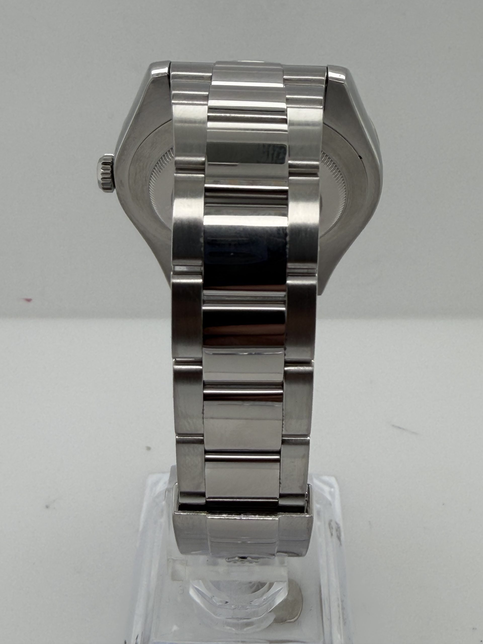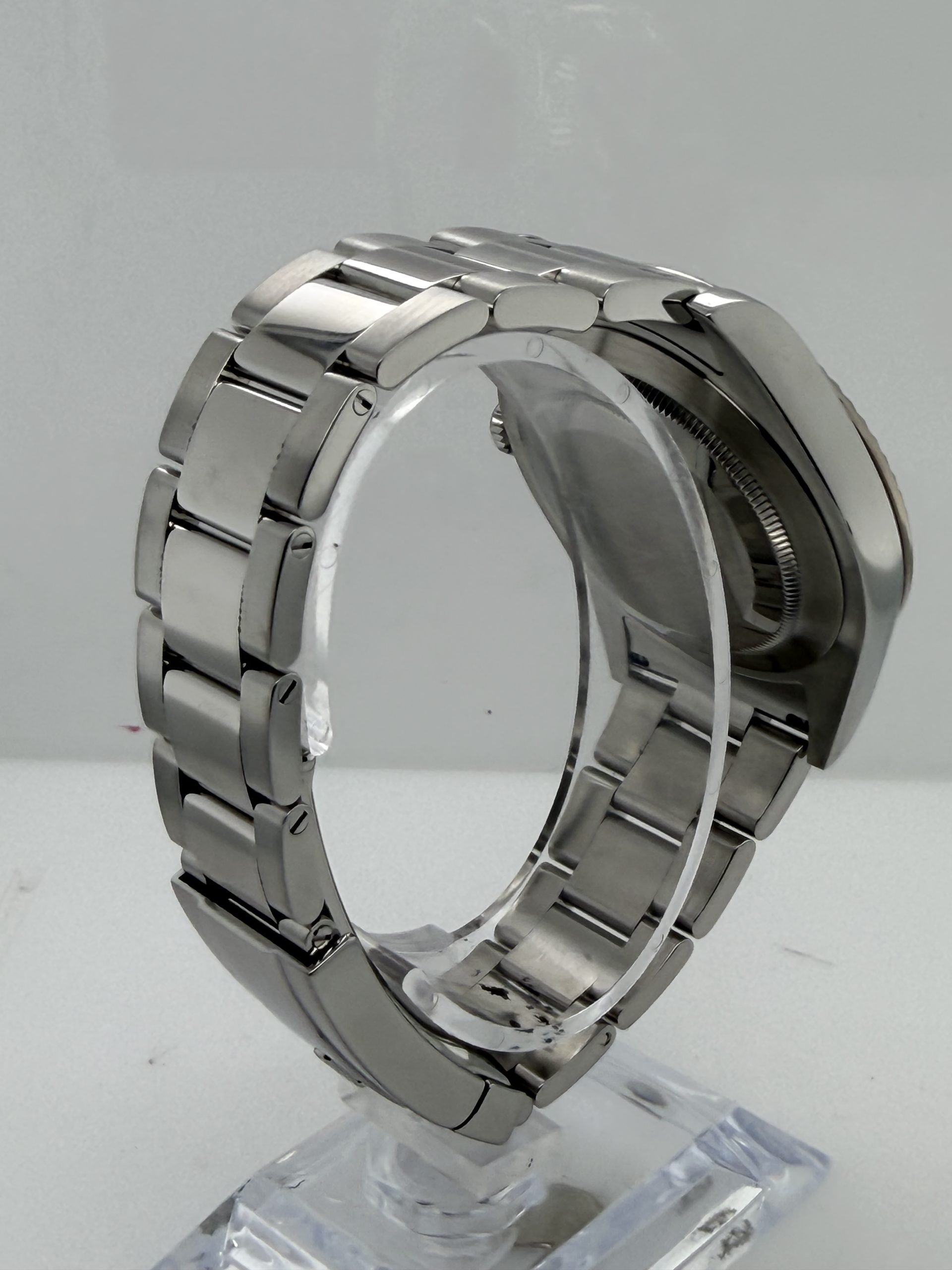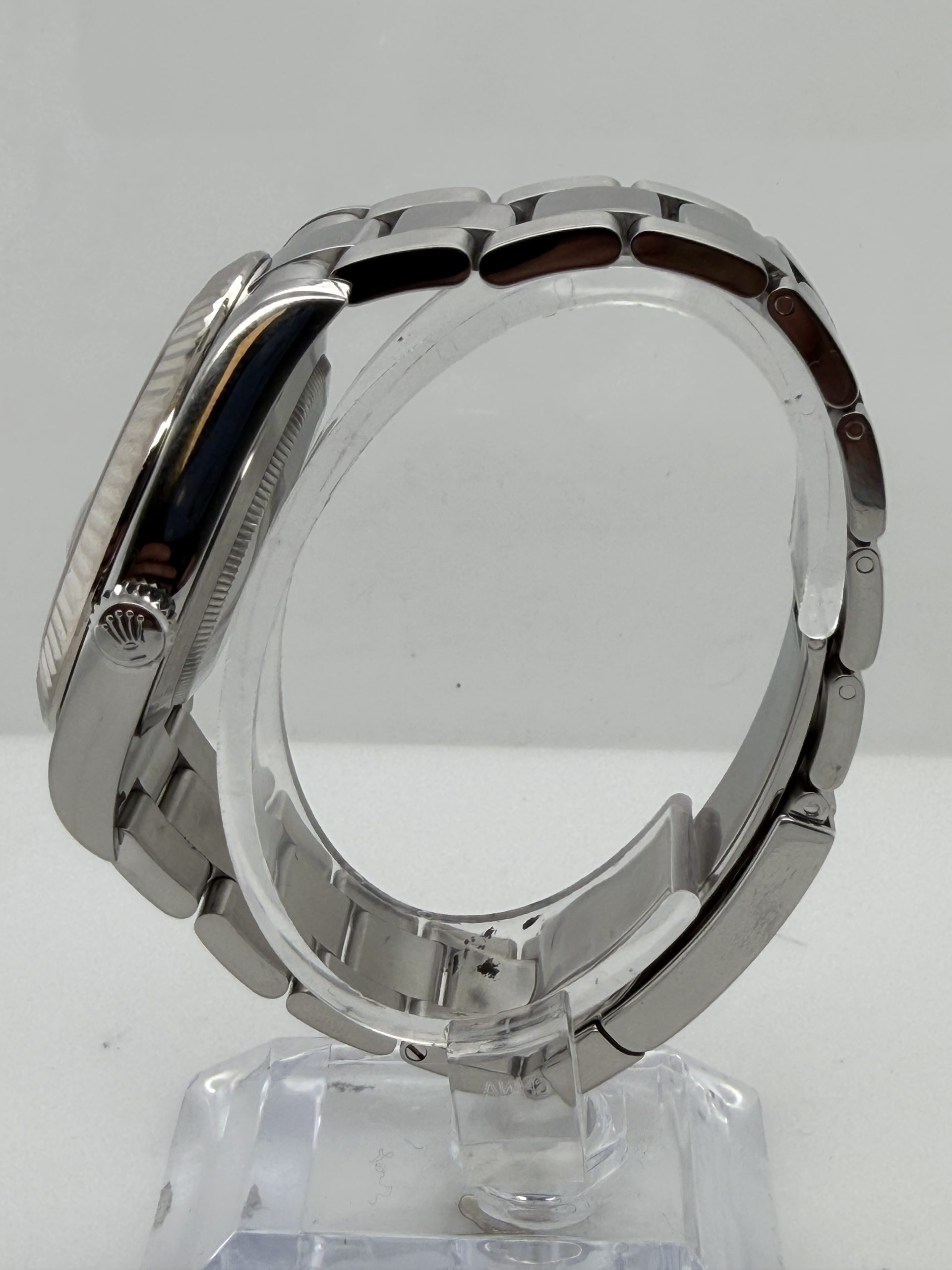 De Rolex Datejust II met referentie 116334 deze versie met de zwarte wijzerplaat geeft het horloge een meer sportieve en krachtige uitstraling , de roestvrijstalen kast is 41 mm en heeft een 18 karaat witgouden lunette , saffierglas met cyclops datumvergroting ,wijzers en streep indexen met lichtgevend materiaal (super luminova) automatisch uurwerk met Rolex kaliber 3136 met een gangreserve van circa ~48-50 uur , dit horloge is bekend om zijn betrouwbaarheid, precisie en duurzaamheid compleet met doos en certificaat en servicekaart voor de prijs van € 9306