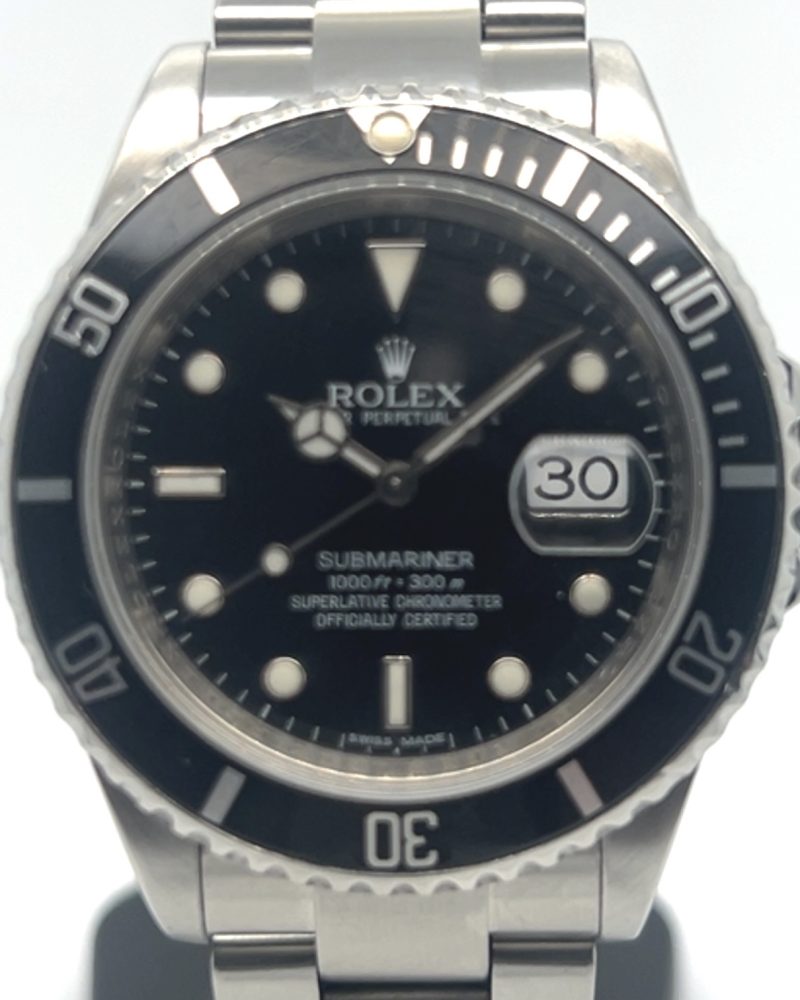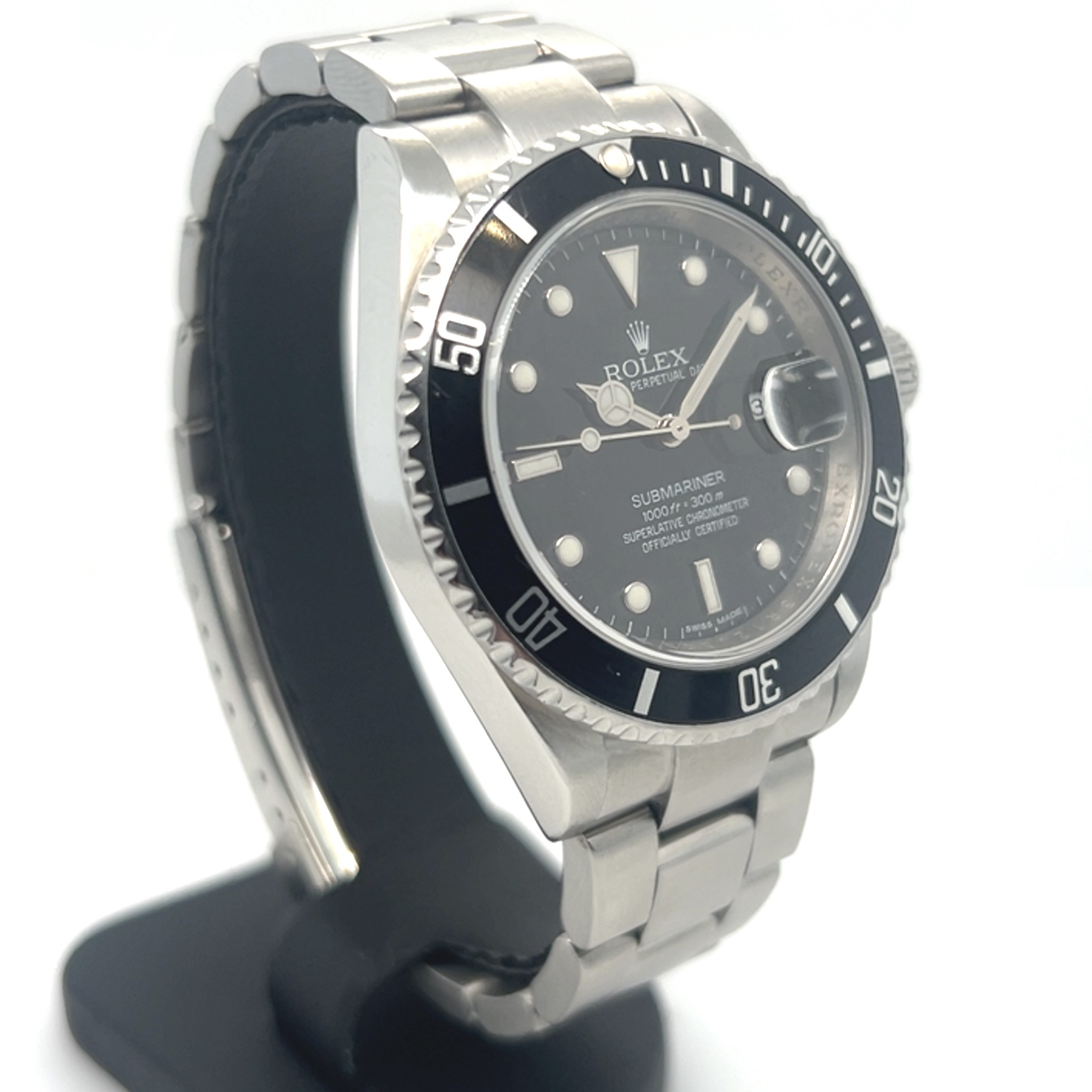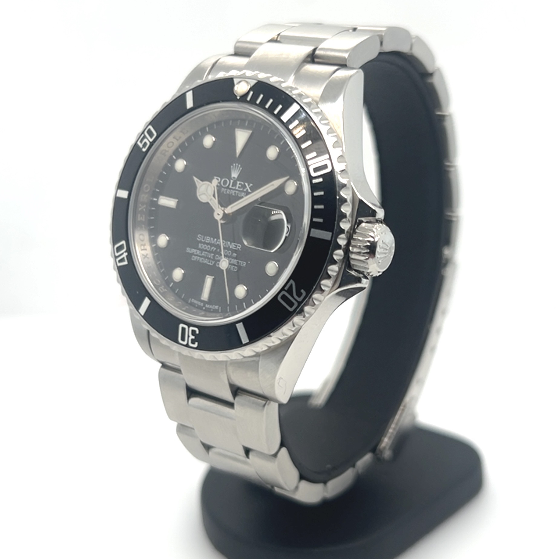 Hele mooie en zeer goed onderhouden ROLEX Oyster Perpetual SUBMARINER DATE chronometer in staal, referentie 16610 , Oyster armband ,Fliplockslot,draaibare Unidirectionele lunette voor controle decompressietijd,beschermende steun voor Triplock opwindkroon,automatisch uurwerk, saffierglas,waterdicht tot op 300 M,