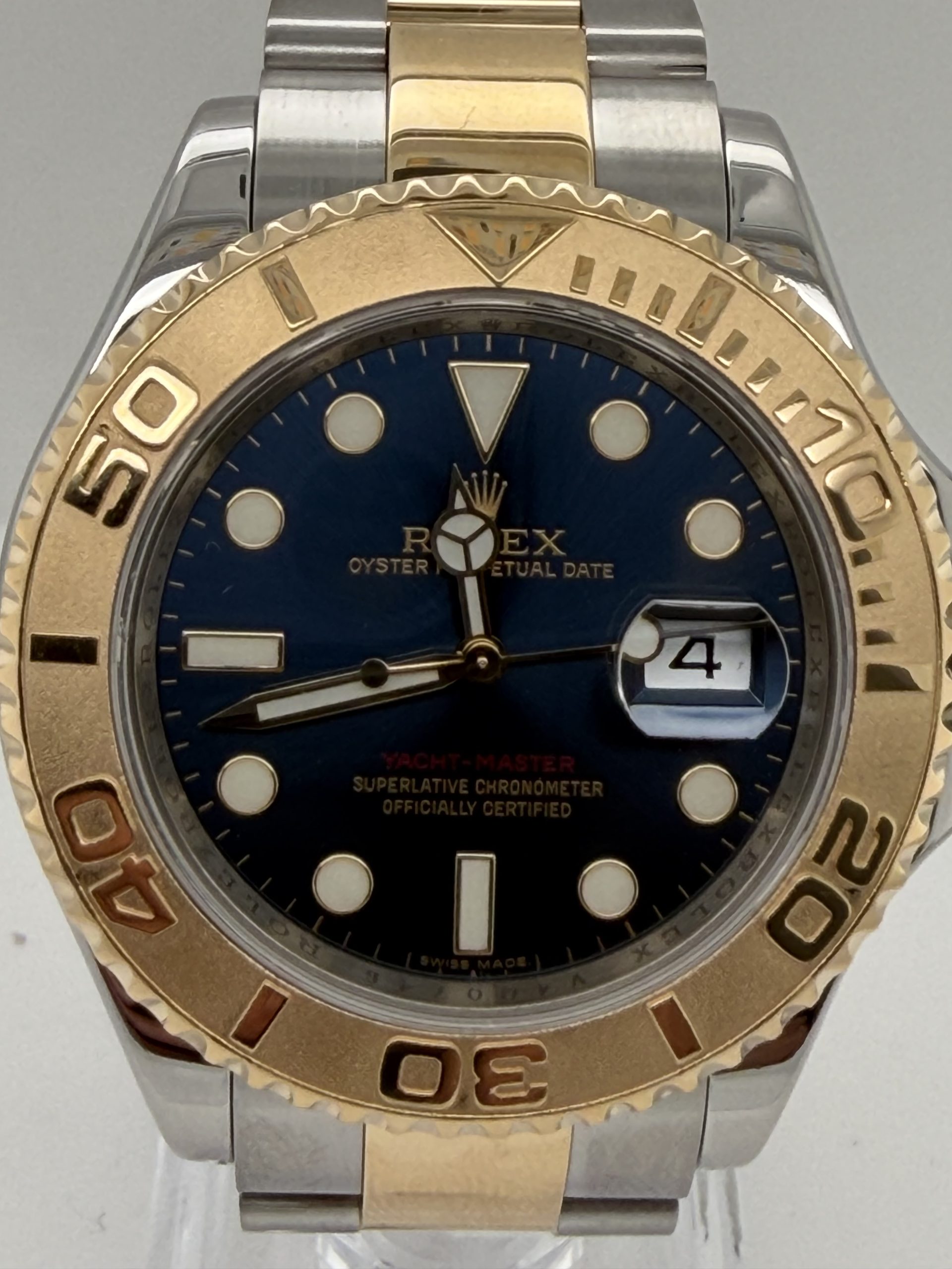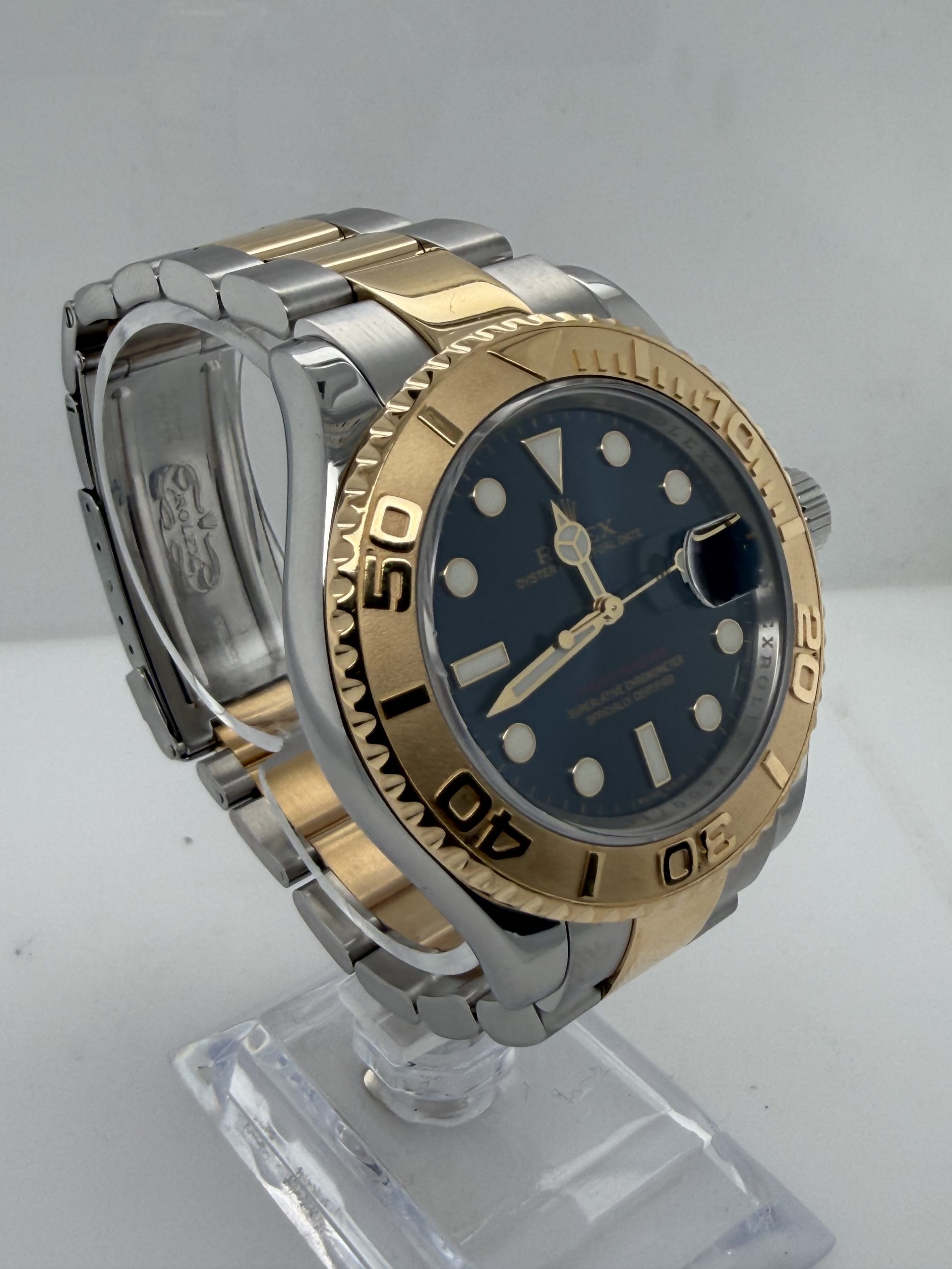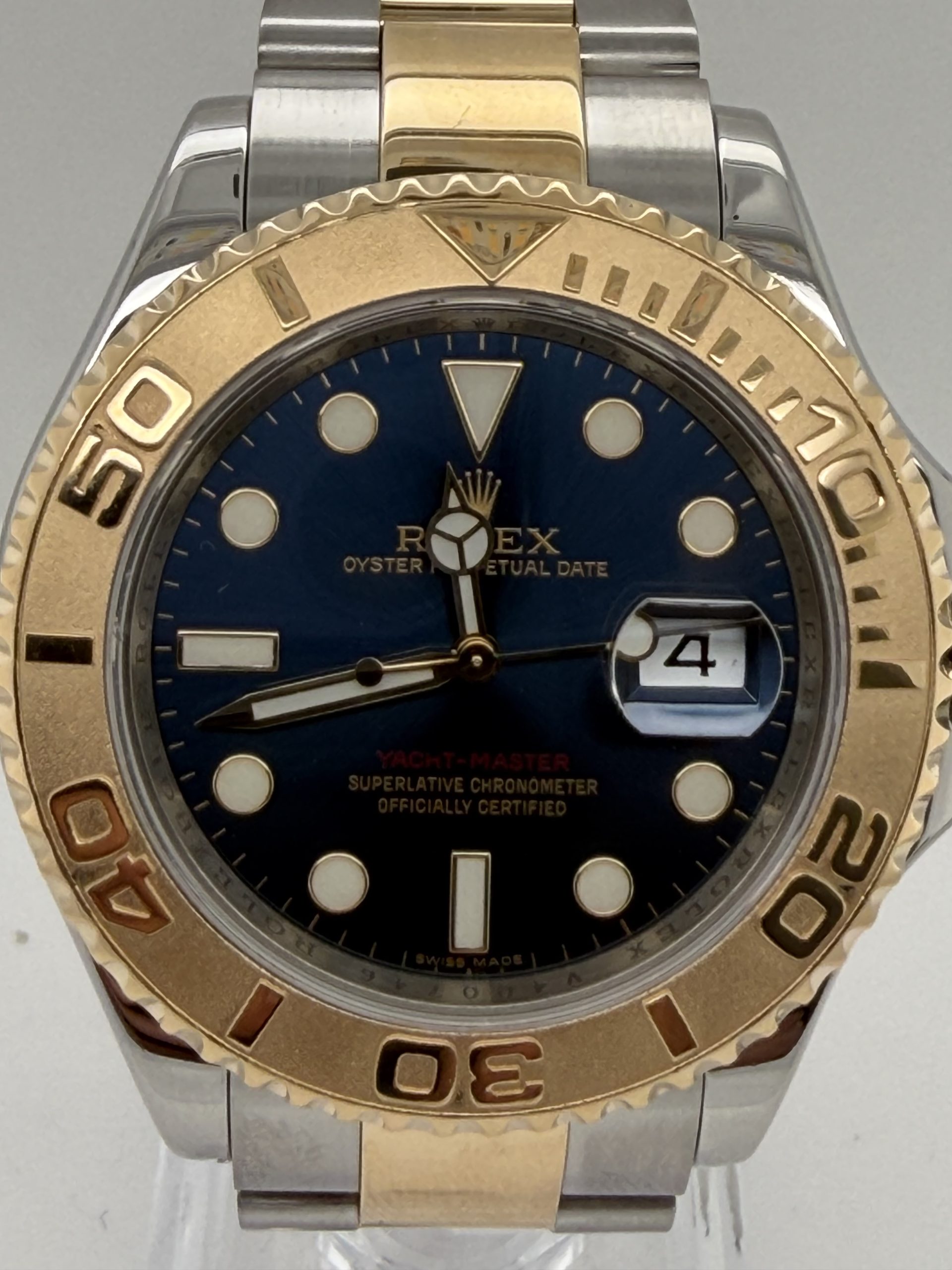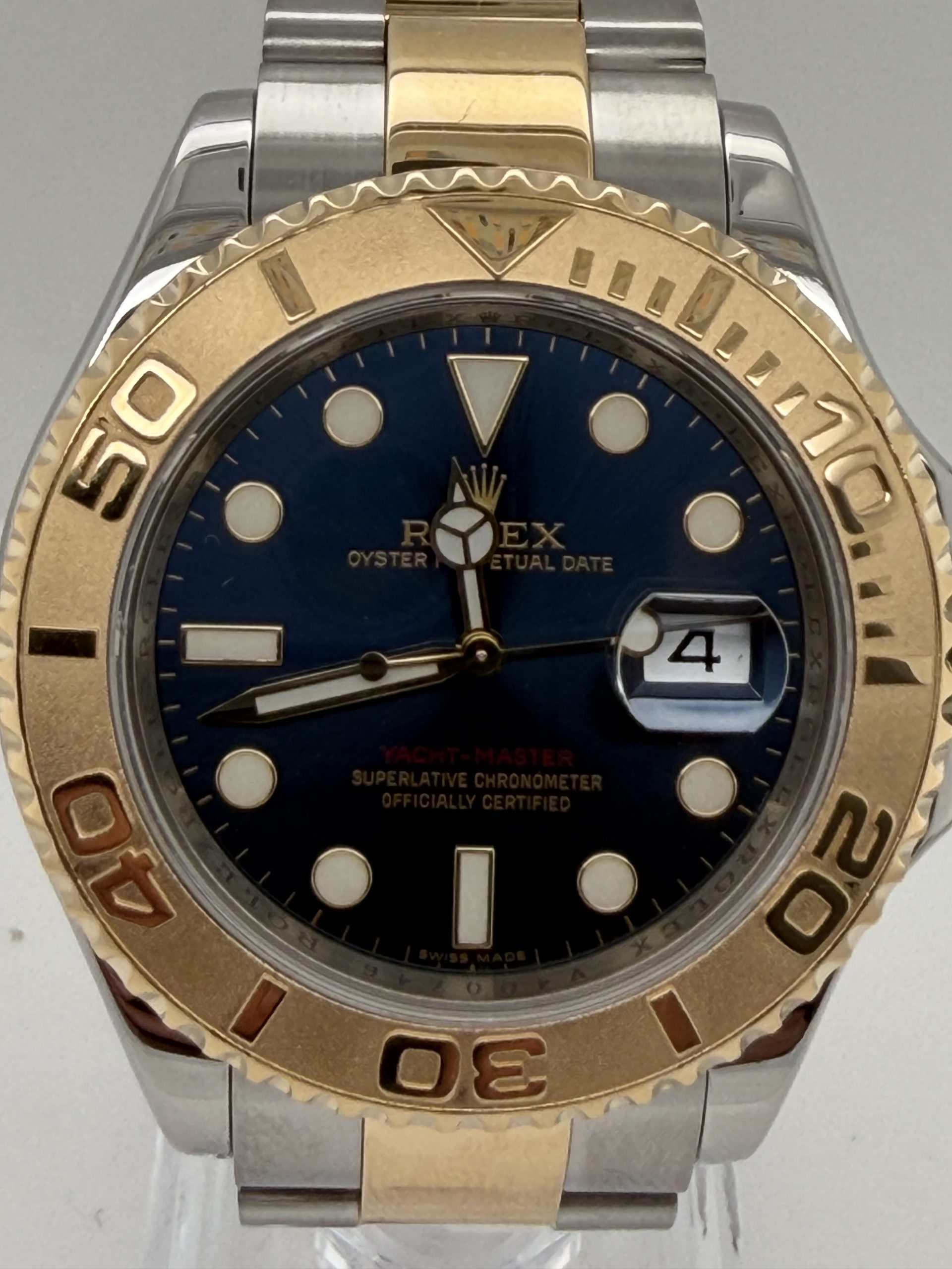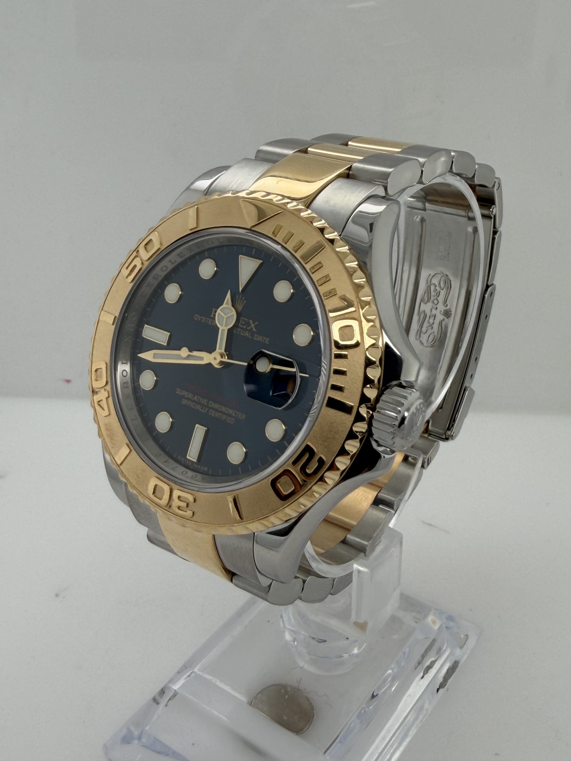 De Rolex Yacht-Master met referentie 16623 is een uitvoering in Oystersteel en 18k geelgoud (Rolesor ) de diameter van de kast is 40mm , de lunette is draaiend en massief goud , saffierglas , automatisch uurwerk kaliber 3135 ( dit uurwerk staat bekend als een van de meest betrouwbare Rolex kaliber ooit) met een gangreserve van circa 48 uur , blauwe wijzerplaat met sunburst effect met Mercedes wijzers met lume , Oyster bracelet met fliplocksluiting geheel compleet met certificaat 2011 met booklets etc voor de prijs van €10481