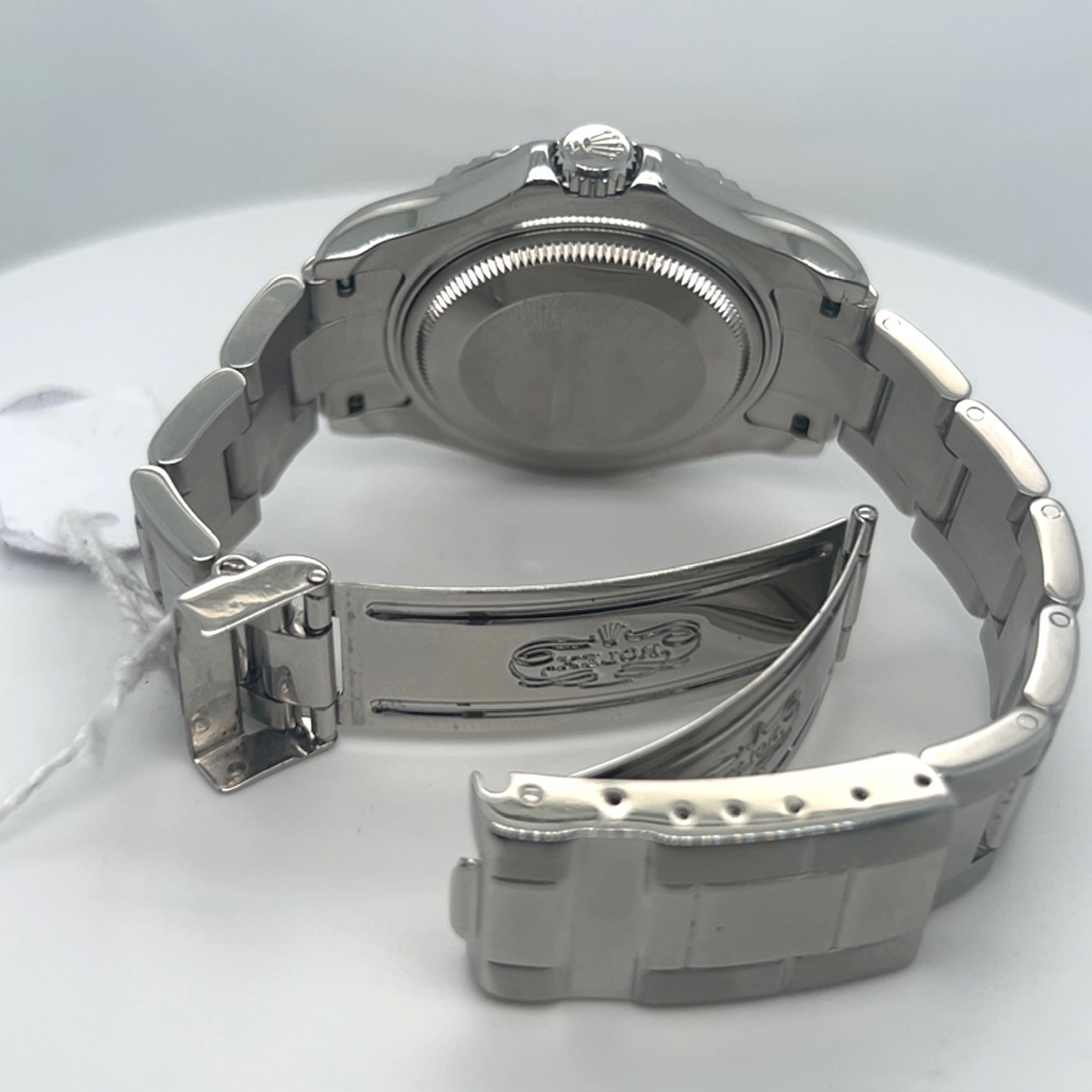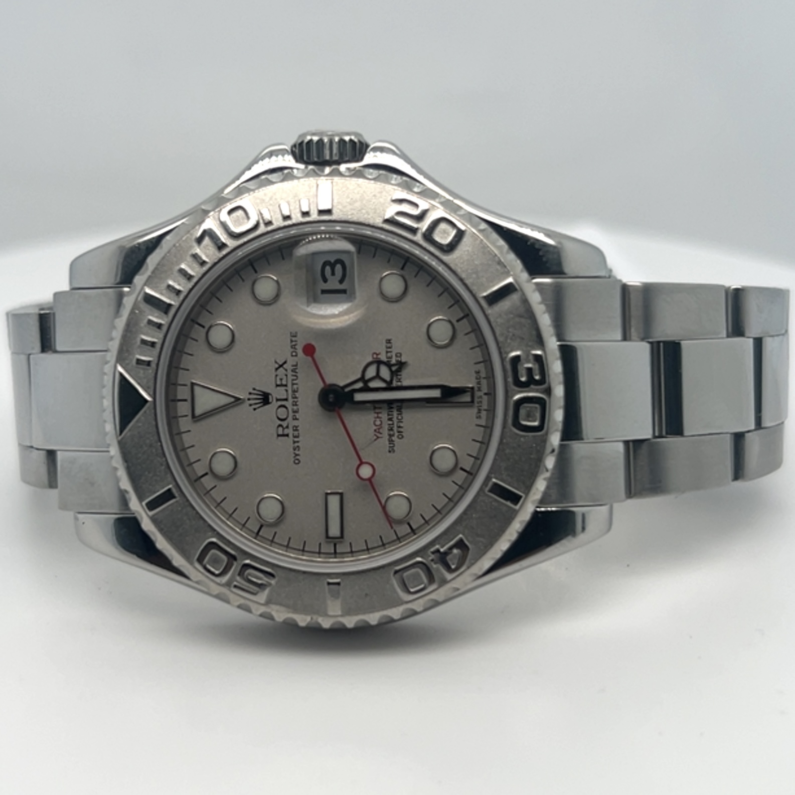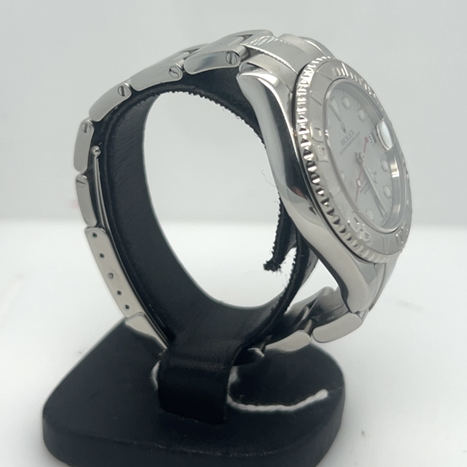 De Rolex Yacht- master “midsize” heeft referentie 168622 met een kastdiameter van 35 mm, combineert roestvrij staal met platina ,Rolex noemt deze combinatie Rolesium ,dat betekent dat de kast en band van staal zijn en de bezel en wijzerplaat van platina zijn. Saffierglas, automatisch uurwerk caliber 2235,luminescente uurmarkeringen en wijzers,de beroemde Oyster bracelet met vouwsluiting , Dit exemplaar komt met een servicekaart van rolex en de originele doos voor de prijs van 6.200 euro