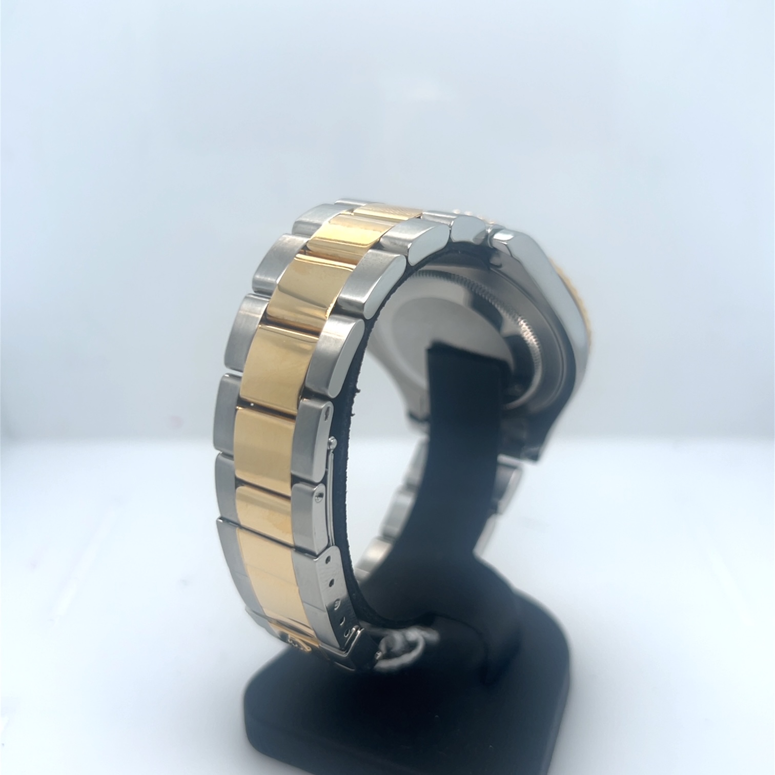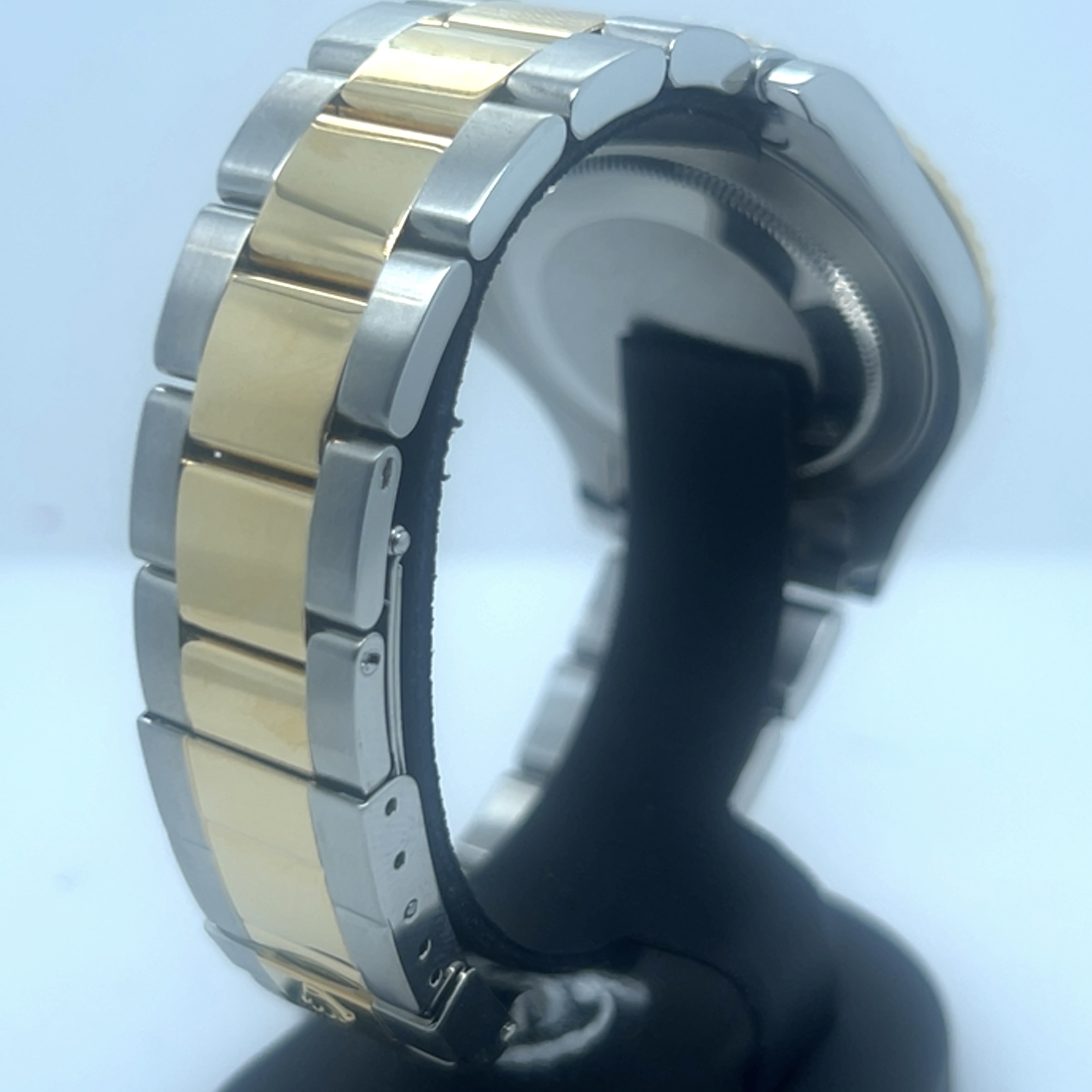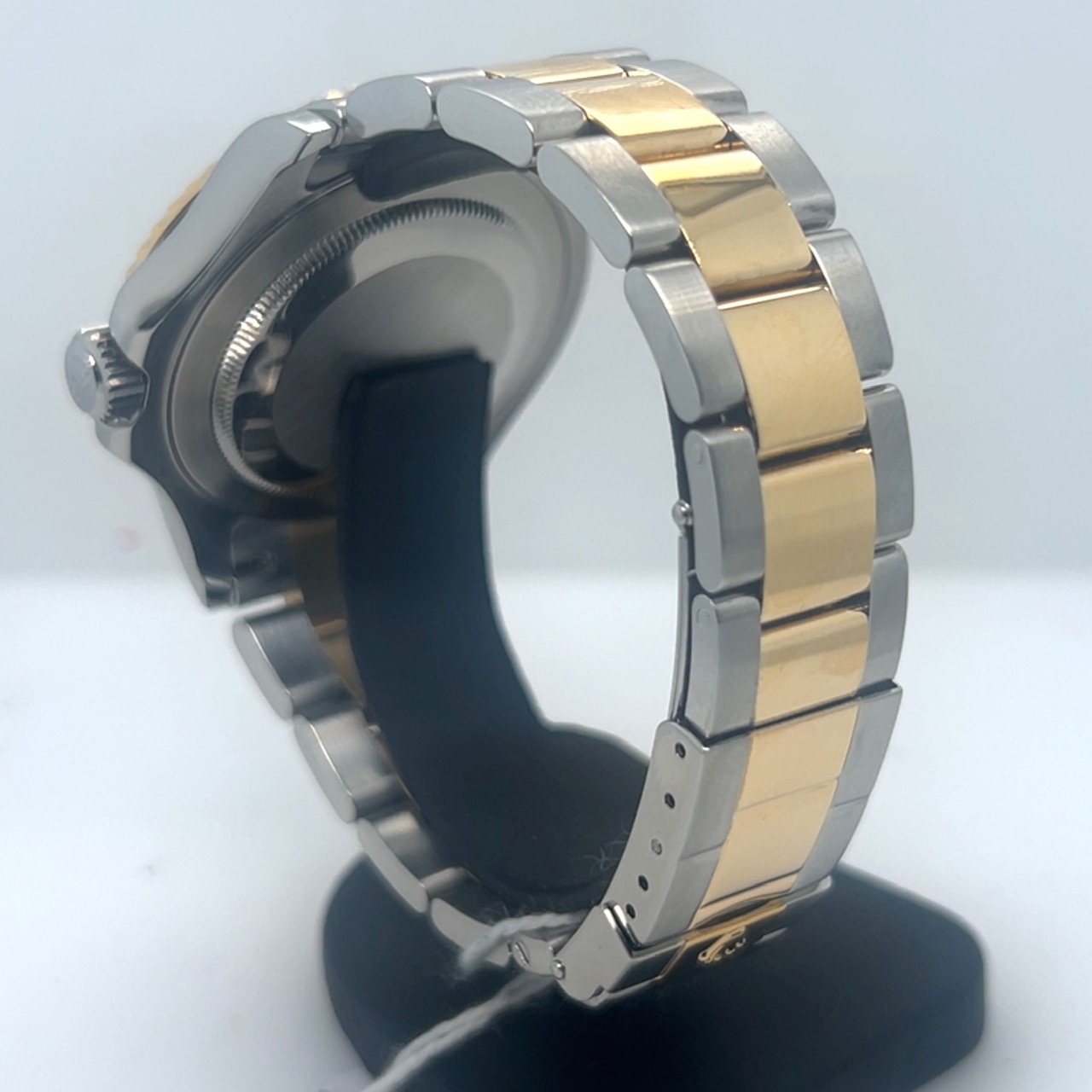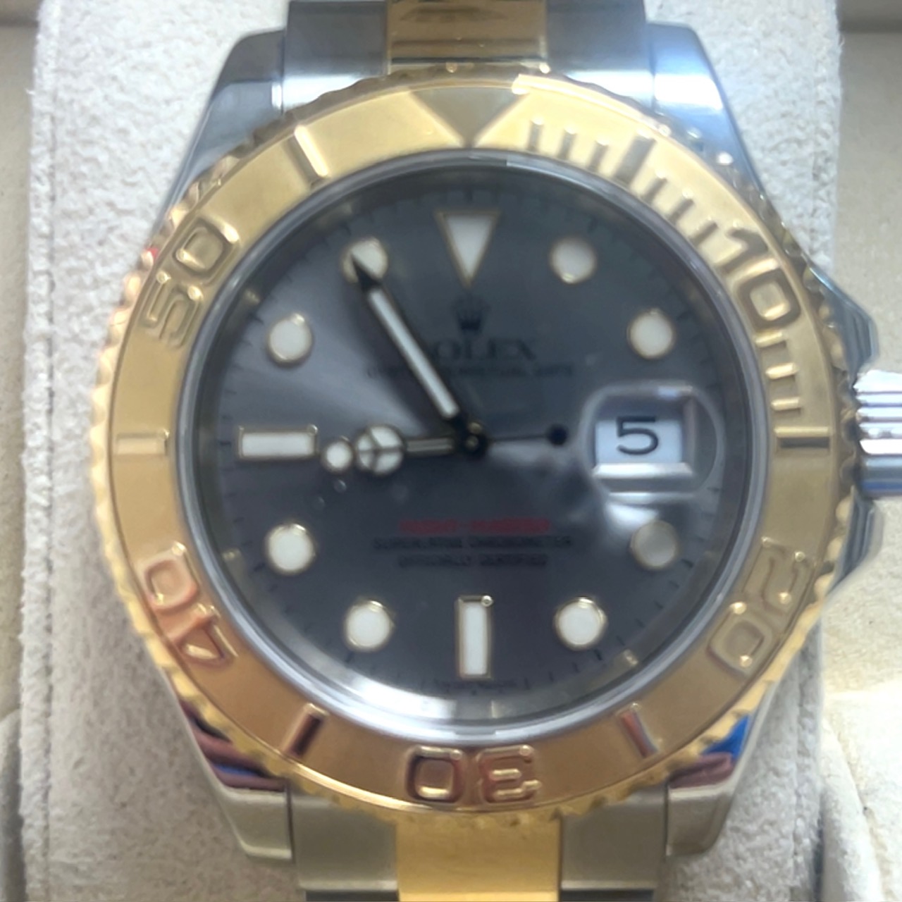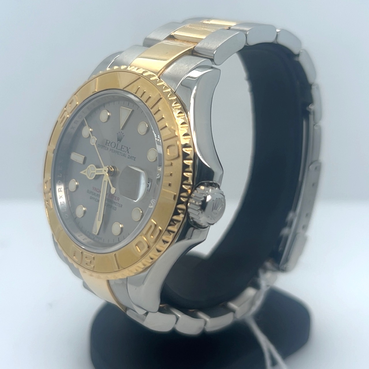 Deze populaire tweekleurige Rolex Yacht-Master met referentie 16623 , de roestvrij stalen kast heeft een diameter van 40 mm lunette in 18 k geel goud ,automatisch uurwerk Rolex calibre 3135 (COSC- gecertificeerd), gangreserve van ca 48 uur, grijze sunburst dial ,Oyster-armband gecombineerd staal en 18 k geel goud (Rolesor) met een vouwsluiting en veiligheidsclip ,in zeer goede staat komt met booklets ,certificaat 2011, de originele doos voor de prijs van 10.384 euro met garantie