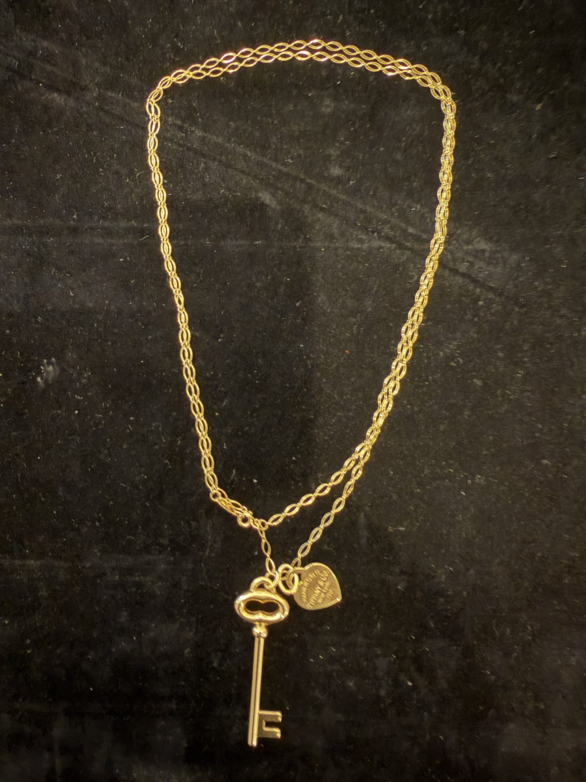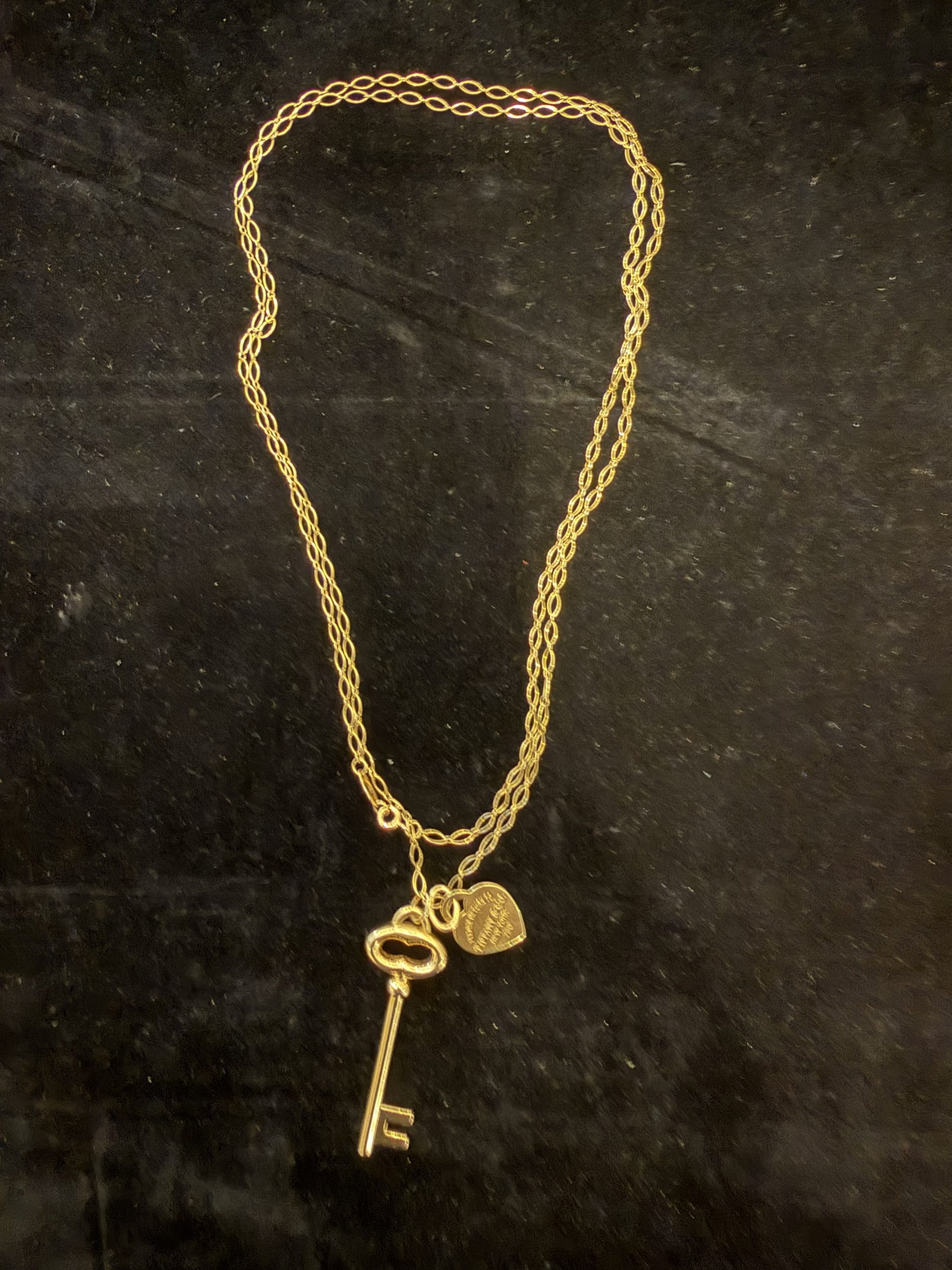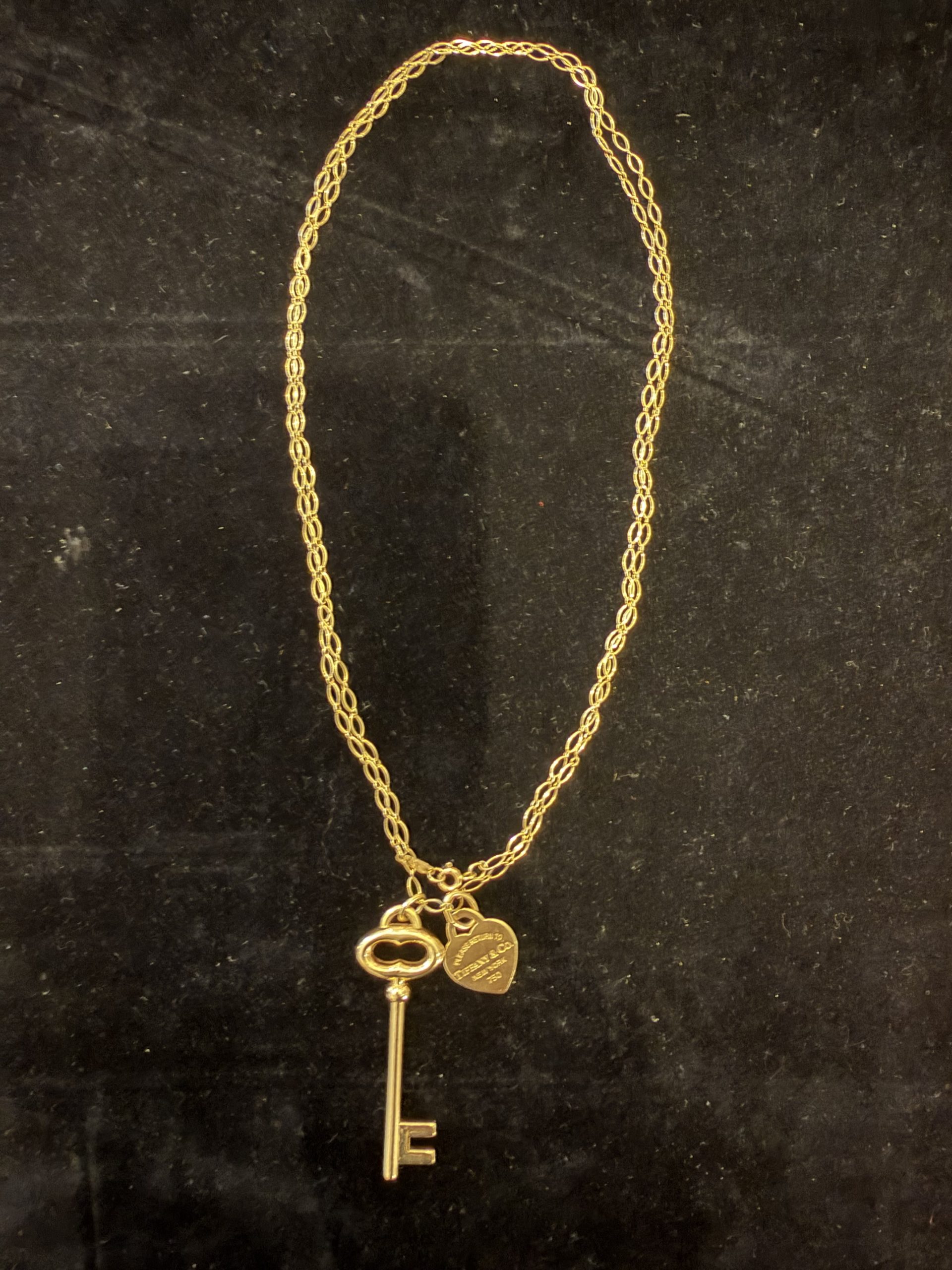 De Return to Tiffany collectie van Tiffany & co , staat bekend om het herkenbare hartvormige label met gravure ‘ please return to Tiffany & co New-York . Het ontwerp is geïnspireerd op een sleutelhanger uit 1969 waarbij verloren items konden worden teruggebracht naar de Tiffany winkel in New-York. 18 karaats geelgouden sieraad € 3450